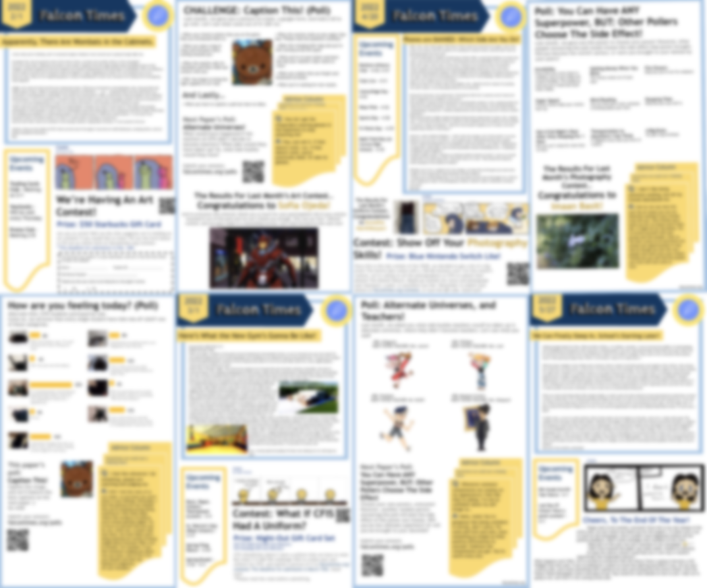The year when a dog went wild on campus, when students discovered the blueprints for the new gym, when phones were banned from CFIS, and plenty more. Check out releases from the year of 2021-2022!